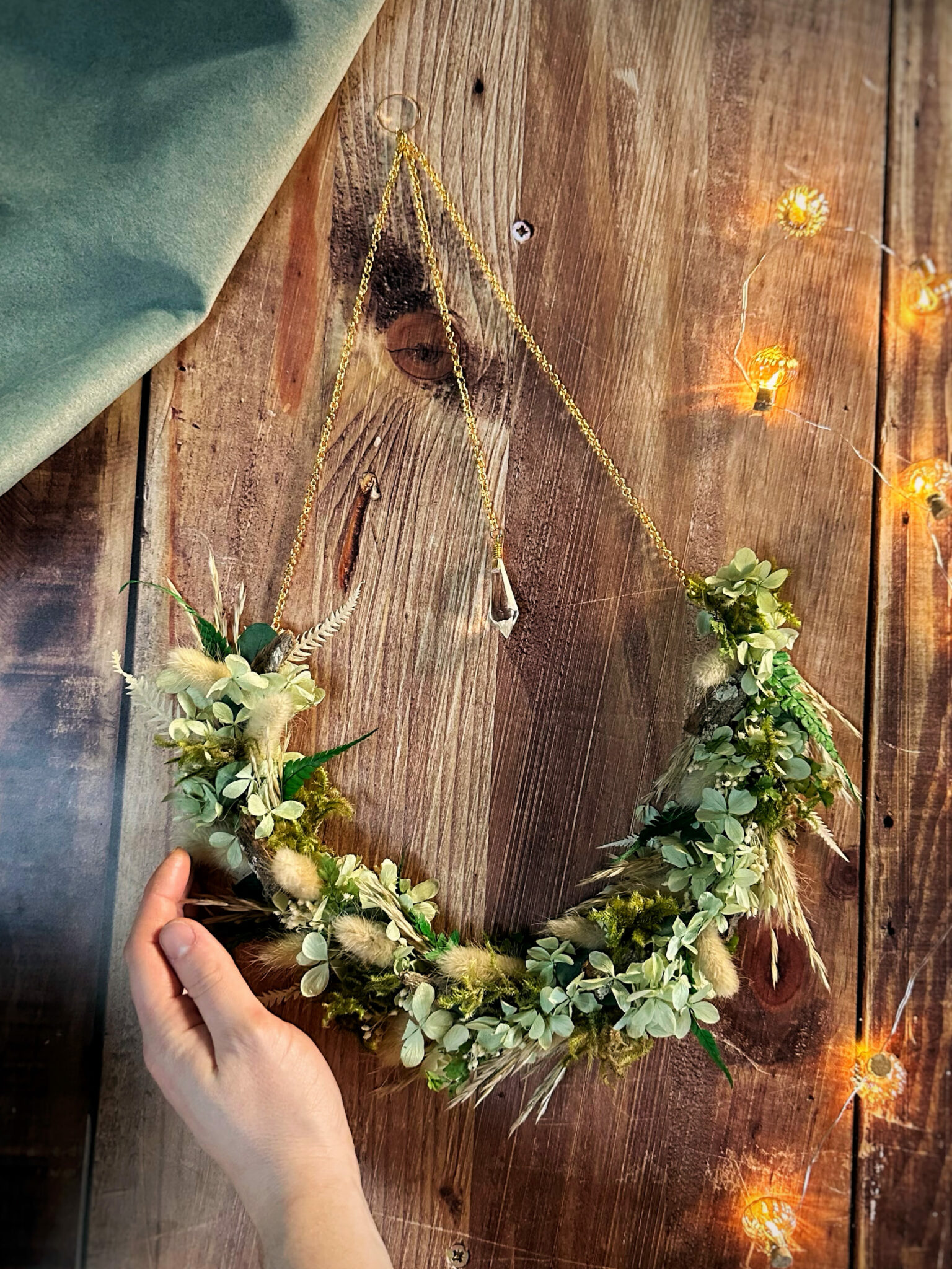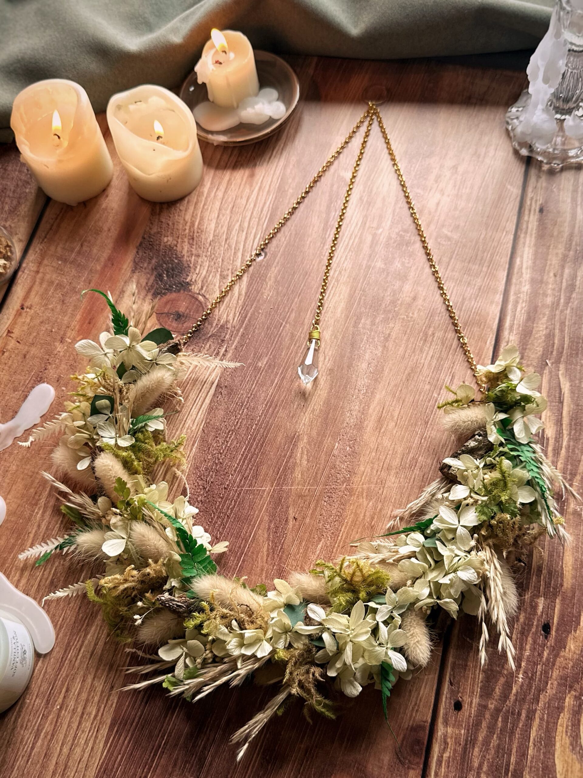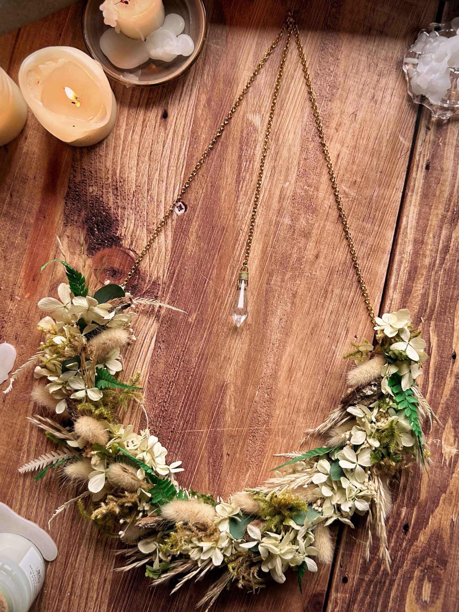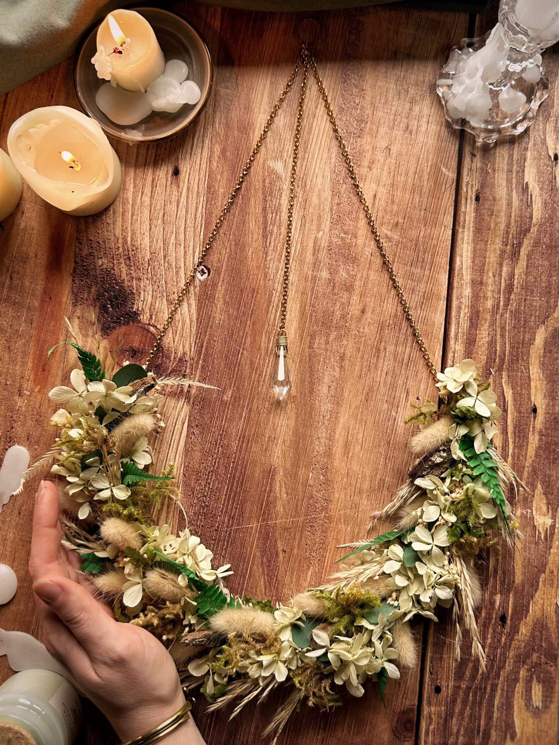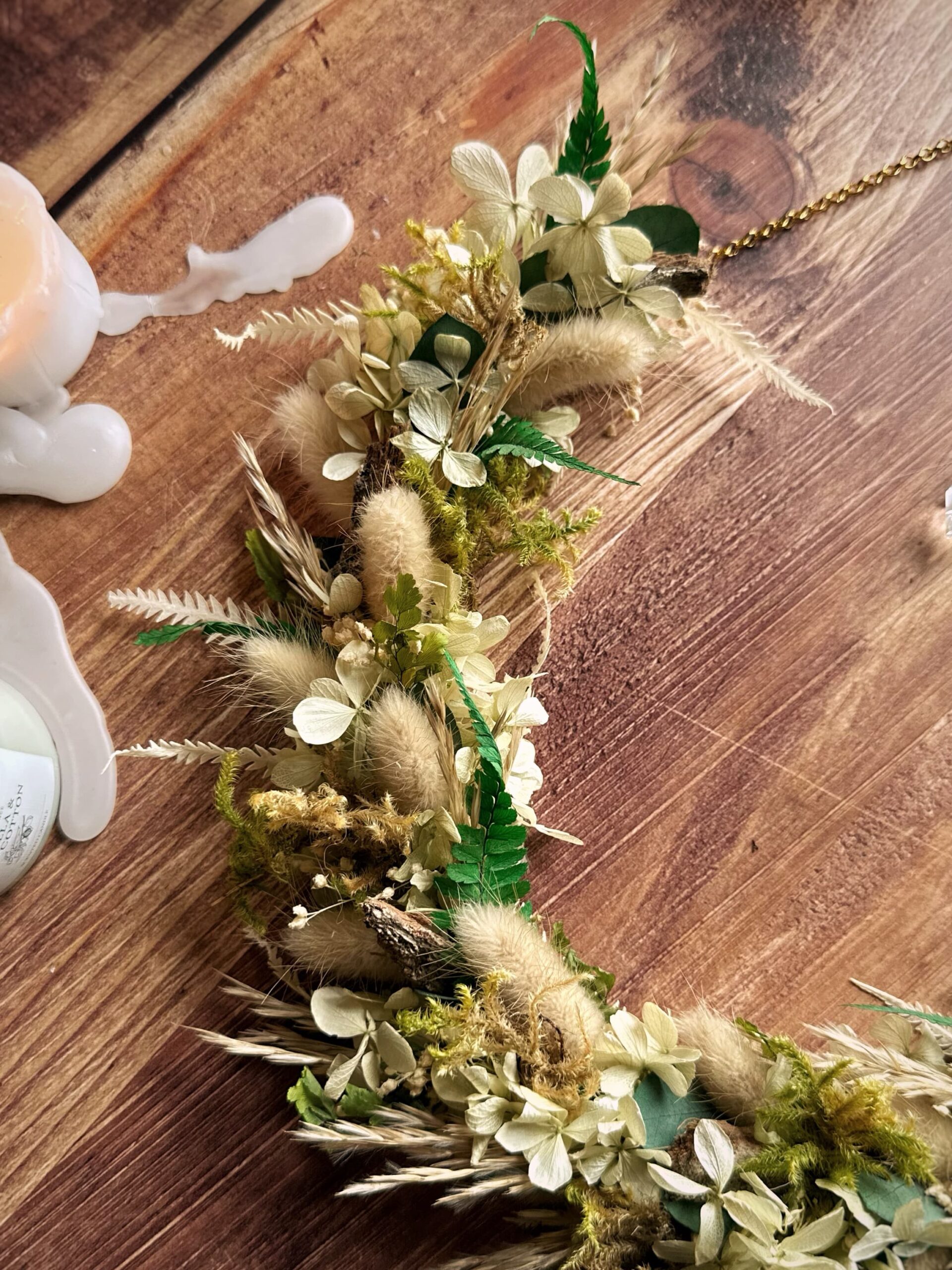 Douceur des bois – Couronne de fleurs séchées & stabilisées