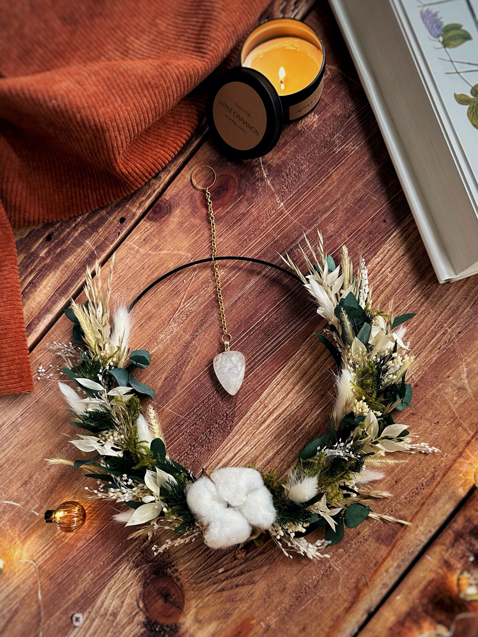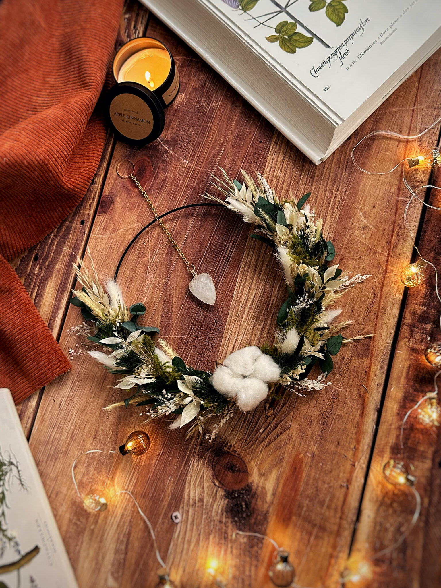 L’Eveil des bois – Couronne de fleurs séchées et stabilisées – Hiver Féérique