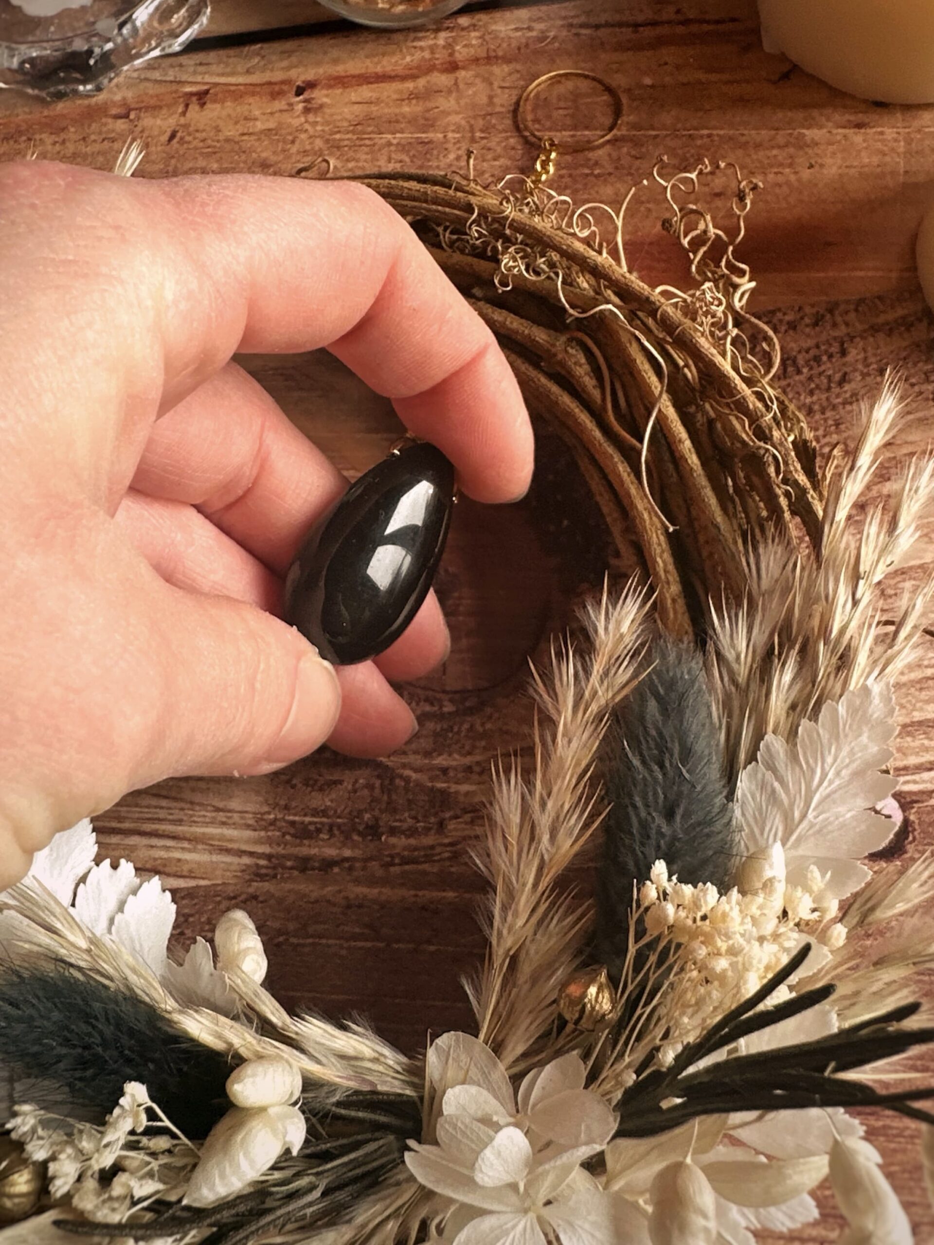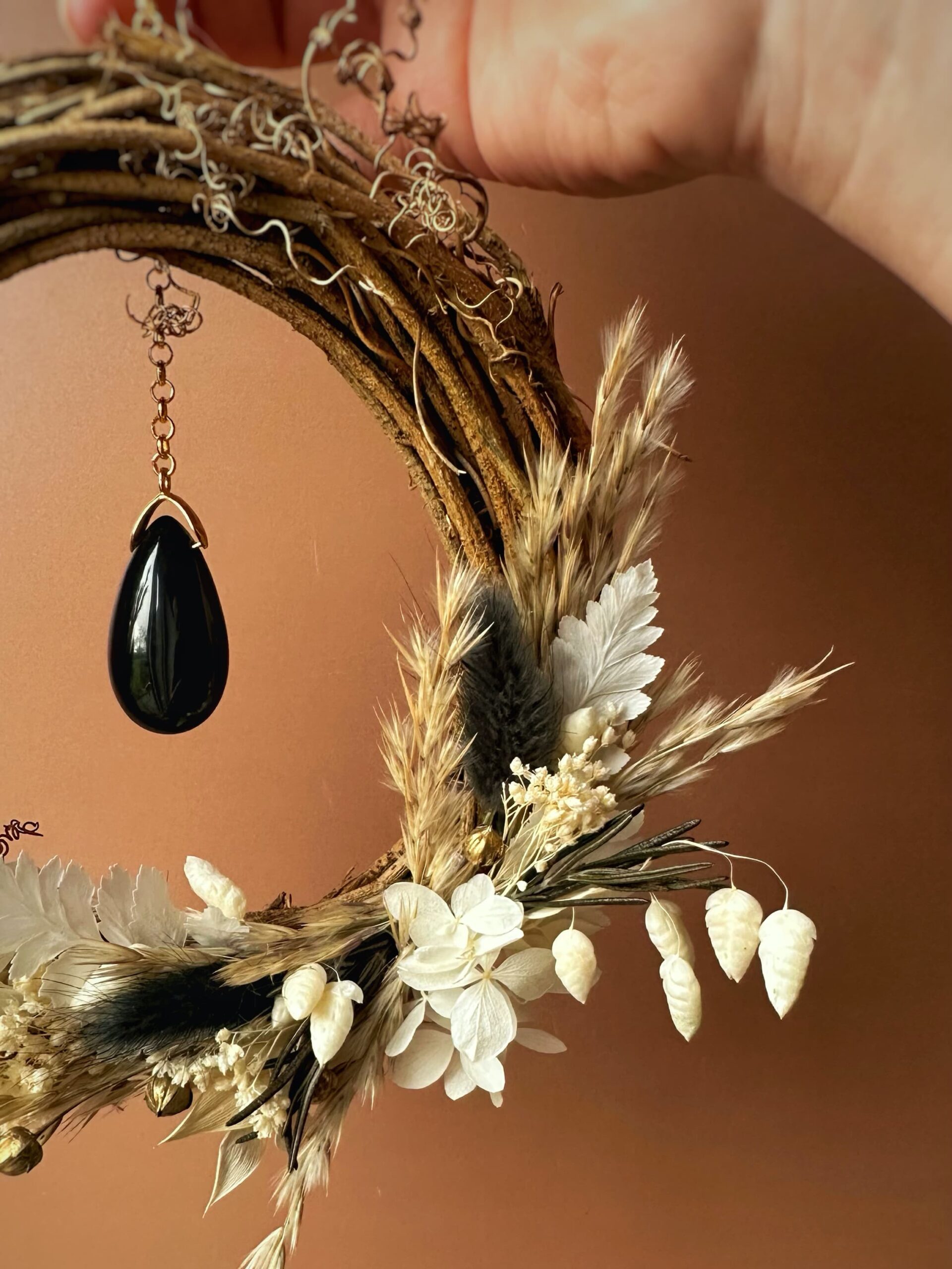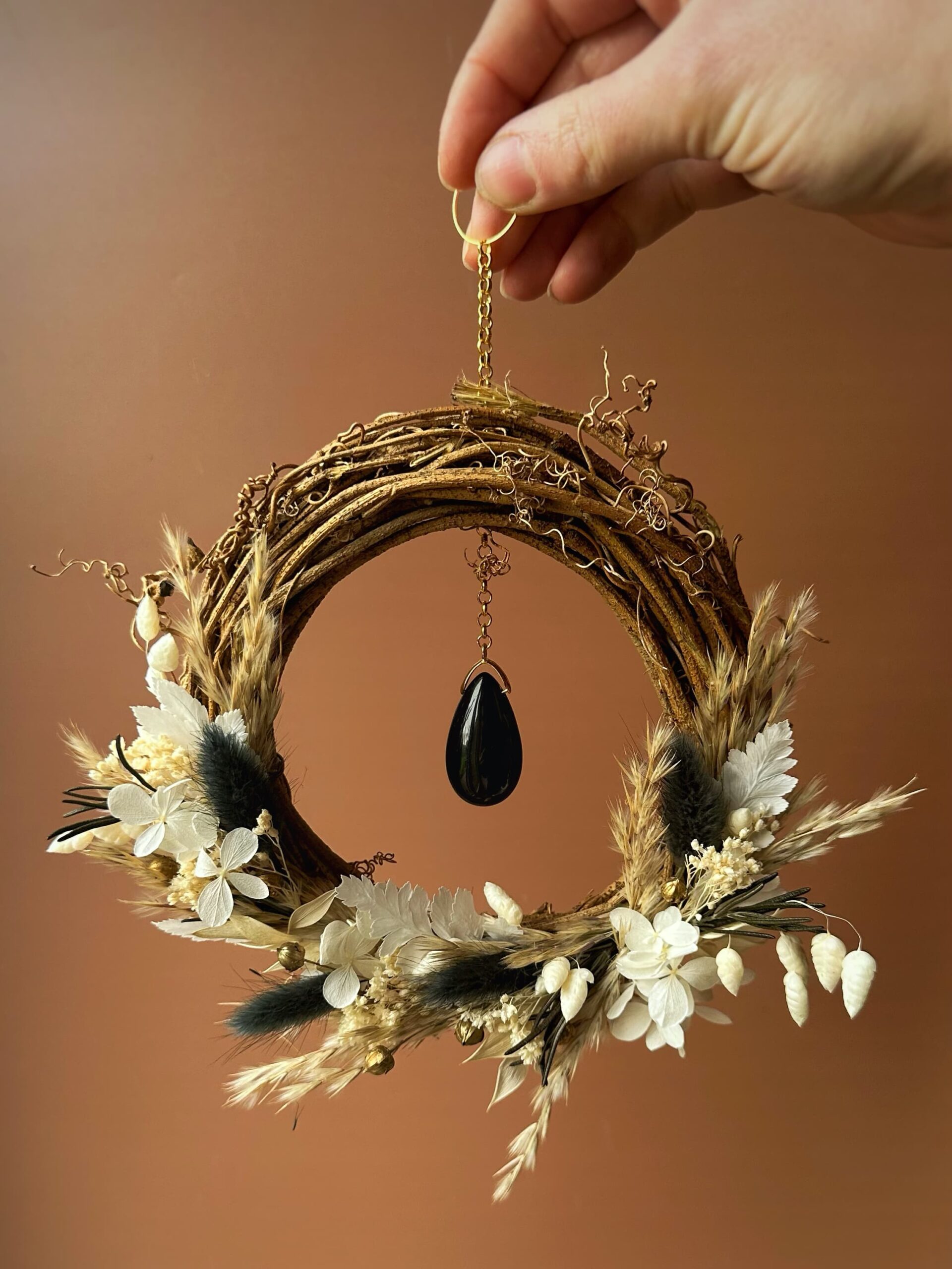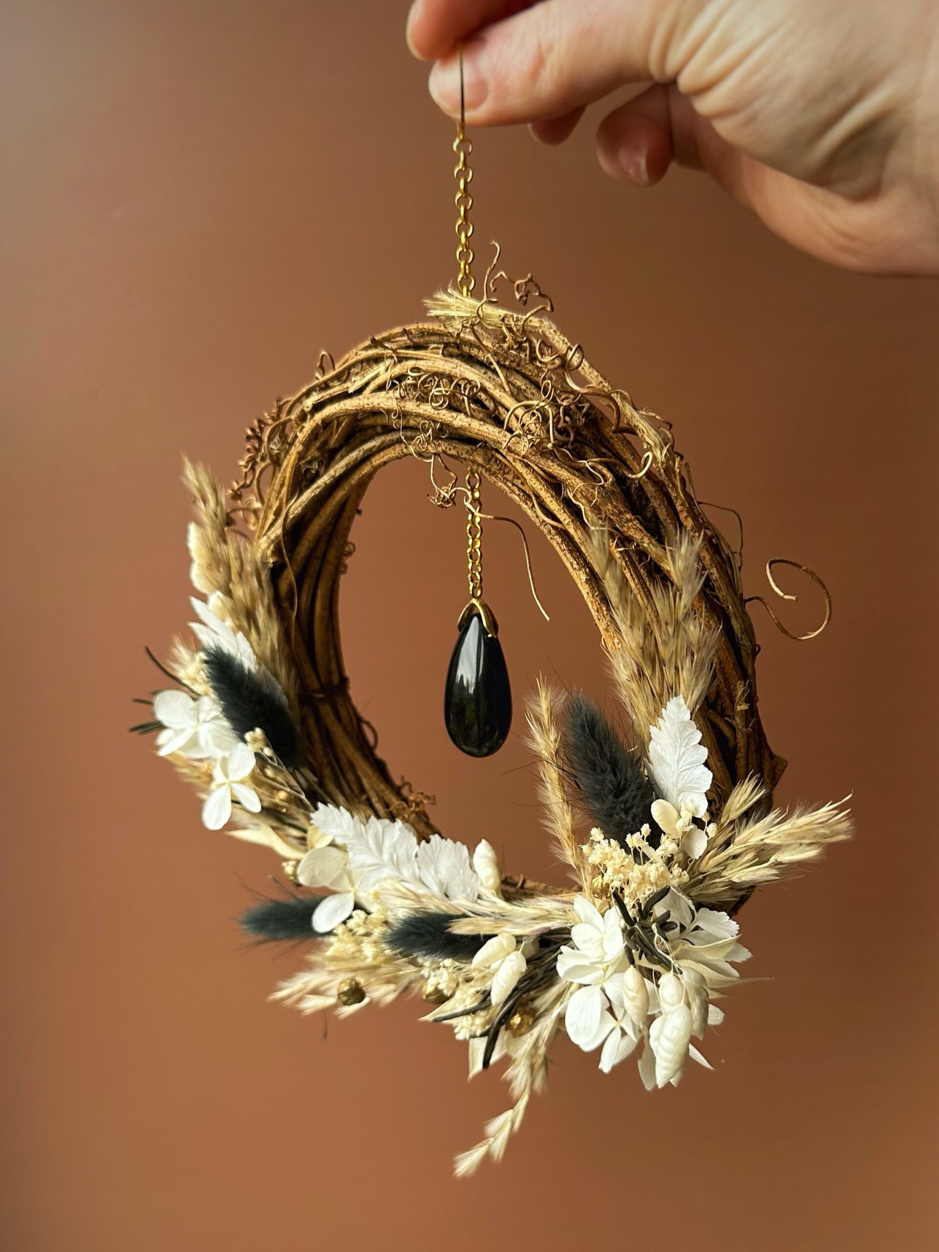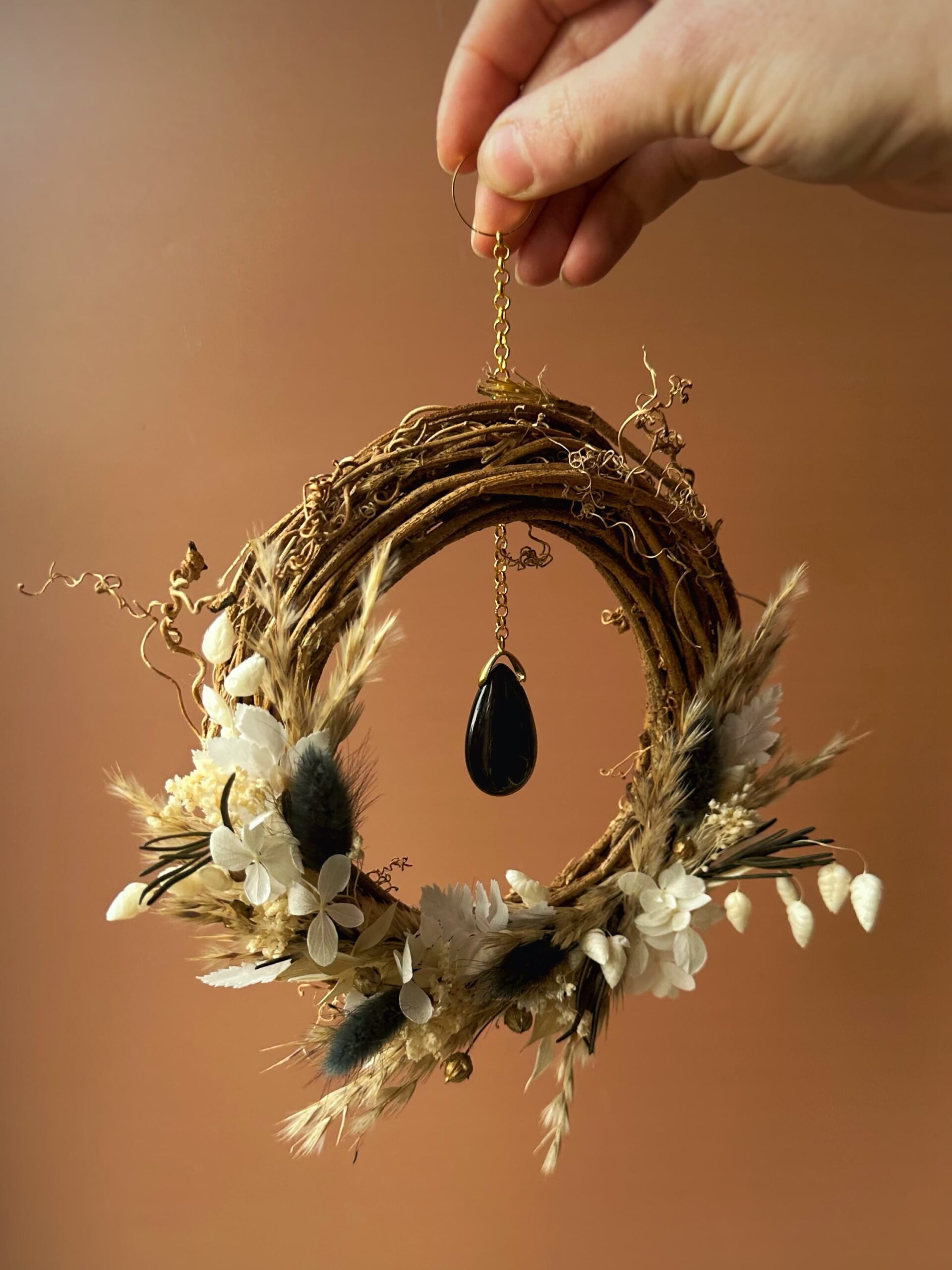 Obscur – Couronne en fleurs séchées et stabilisées et vigne